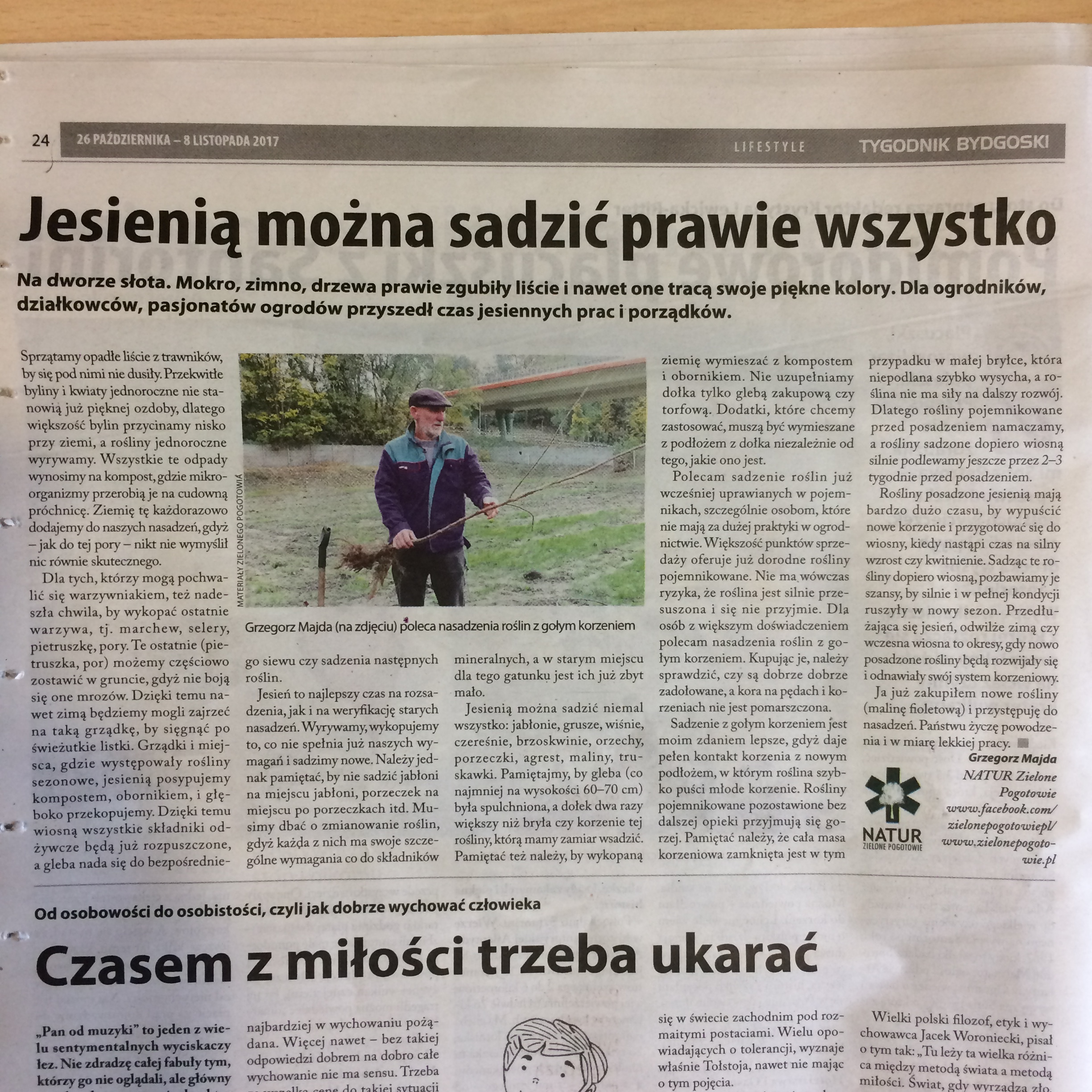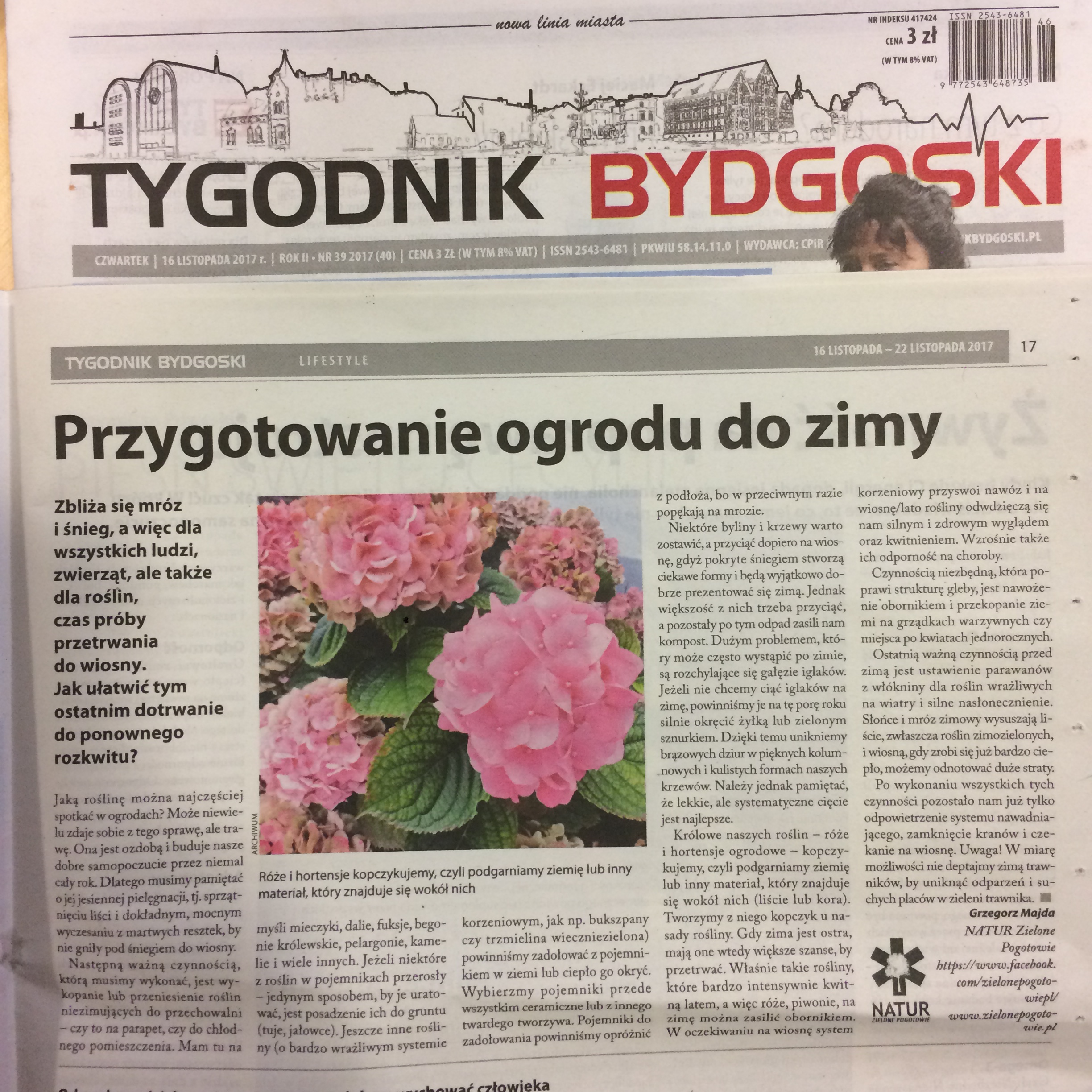 4. Artykuły w lokalnej gazecie pt. Tygodnik Bydgoski. Co tydzień tworzymy artykuł dla czytelników z naszego miasta i okolic, prezentując aktualne tematy, porady i wskazówki na temat zakładania ogrodu, pielęgnacji roślin czy prezentując ciekawostki ogrodnicze.